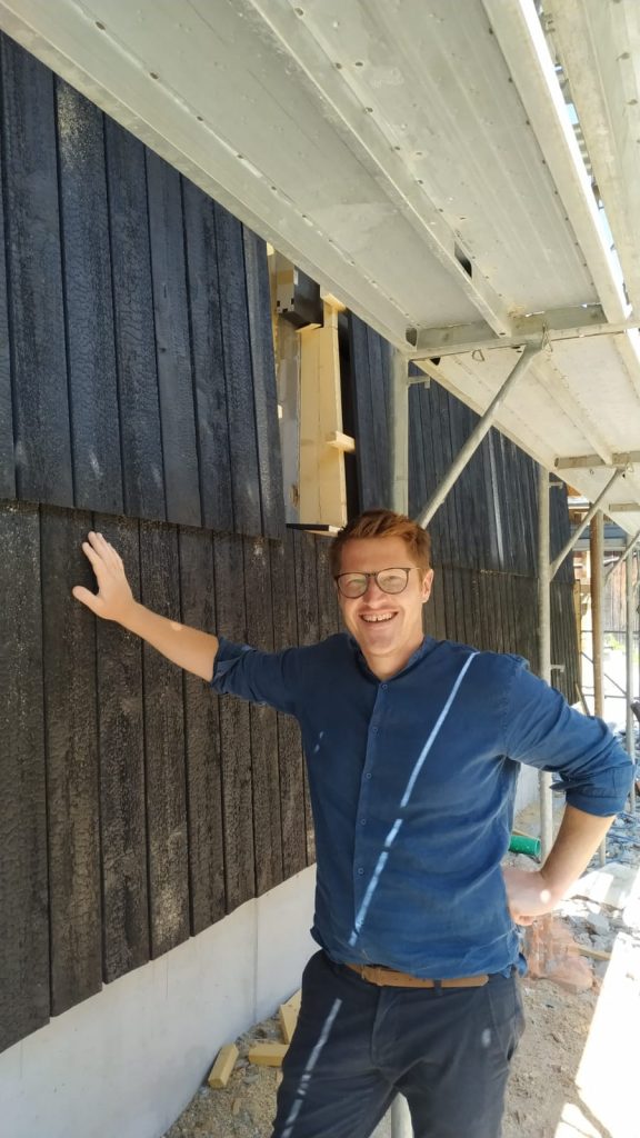 Die Fassade aus karbonisiertem Holz ist in Umsetzung. Wir sind gespannt auf das Ergebnis! Mehr dazu gibt es bald hier auf unserer Website. Folgen Sie auch unseren Social Media Kanälen, um alle laufenden Entwicklungen zu verfolgen: FacebookInstagram