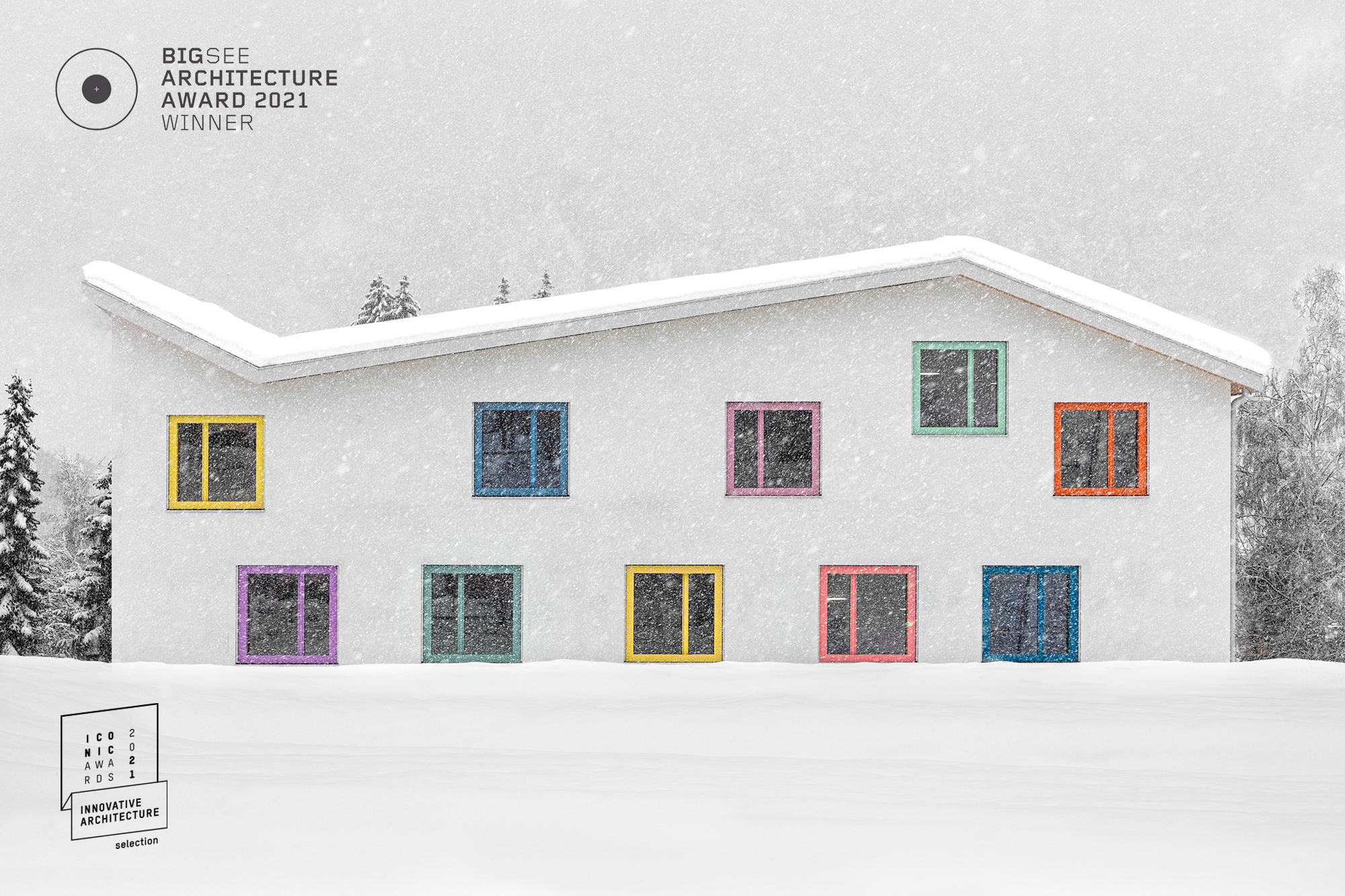 Der Wunsch nach individuellen Wohnformen sowie die örtliche Baukultur sind charaktergebend für das architektonische Entwurfskonzept zu den Obomila Waldchalets in Meransen. Das Büro hat für seine Auftraggeber ein Gebäudegefüge mit drei Einheiten konzipiert, in dem die Architektur auf die Bedürfnisse des Gastes zugeschnitten ist und zum Wohlfühlen einlädt. Die Fächerform schafft Privatsphäre und sorgt für unterschiedliche Ausblicke in die umgebende Natur deren einmalige Qualitäten gleichermaßen in das Gebäudeinnere geführt werden. Die überdimensionalen Glasausschnitte umrahmen die jeweiligen Landschaftsbilder und machen jede Wohneinheit einzigartig. Dem Wohnraum und einem Schlafraum wird zudem eine großzügige witterungsgeschützte Terrasse vorgelagert die vor allem zur Sommerszeit stark genutzt werden wird. Die Namen der Gebäude leiten sich aus den historischen Flurnamen des Ortes ab und sind in diesem Sinne stark mit dem Standort verwurzelt.